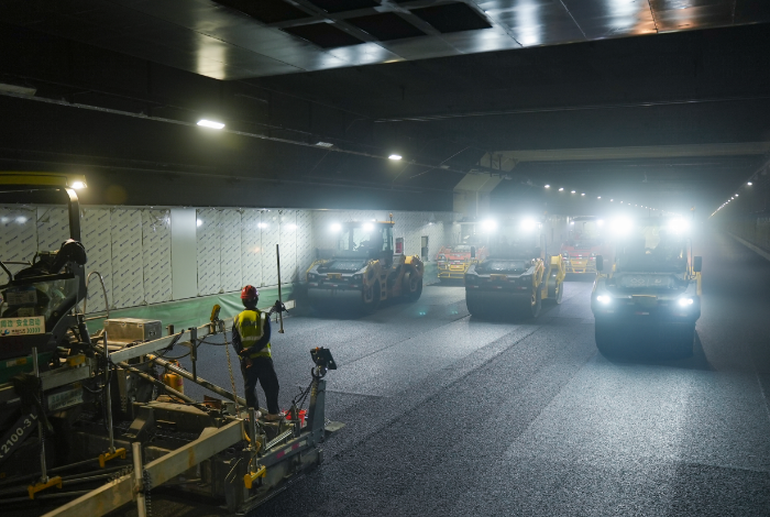 業(yè)內(nèi)率先采用“能級”概念,優(yōu)化振蕩參數(shù),徐工XD135TOSIV振蕩壓路機可將鋪筑材料生產(chǎn)后1小時內(nèi)壓實,效率更高;同時,采用振蕩壓實技術,僅產(chǎn)生水平(切向)方向的振動,對機器兩側(cè)的振動僅為傳統(tǒng)振動壓路機的15%,大幅減輕對沉管隧道的影響。