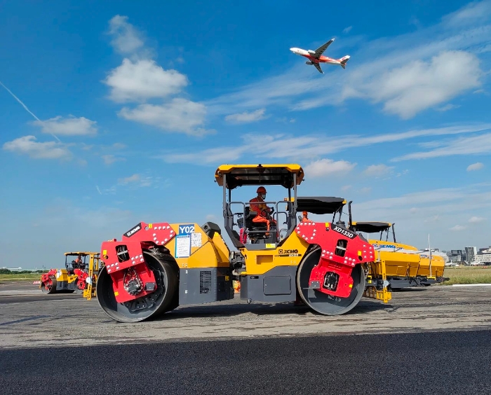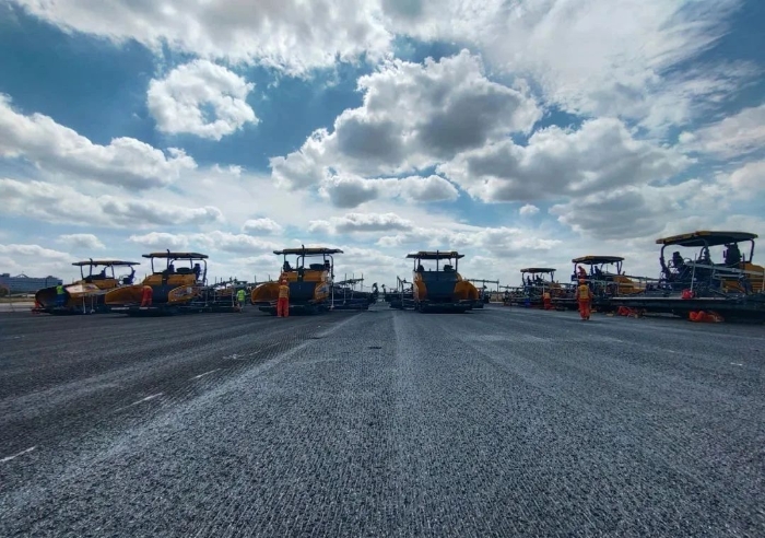 想象一下,航班在西跑道頻繁起降的同時,數(shù)百名施工人員和數(shù)百輛設(shè)備,就在幾百米外忙碌作業(yè)。施工挑戰(zhàn),前所未有的嚴(yán)峻。傳奇,在這短暫的15天一一上演。不過,這傳奇的紙簿上,亦被烙上“徐工金”的身影。徐工成套道路機(jī)械,在此項(xiàng)高難度施工中,迎難而上、挑起重?fù)?dān)。
