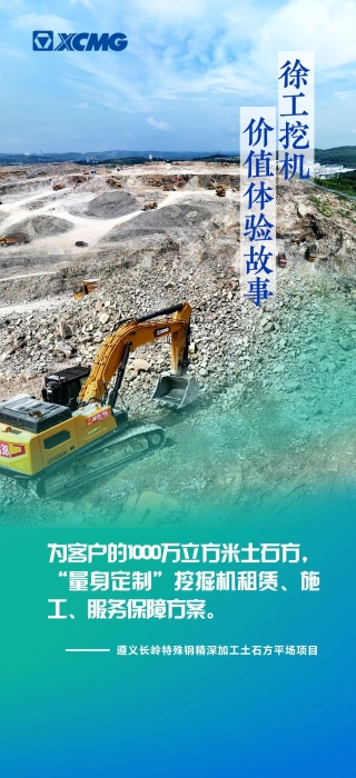貴州遵義長(zhǎng)嶺特殊鋼精深加工技改項(xiàng)目為貴州省2023年重點(diǎn)項(xiàng)目,土石方平場(chǎng)量1000多萬(wàn)方,在整個(gè)建設(shè)過(guò)程中,徐工挖機(jī)為客戶“量身定制”租賃、施工、服務(wù)保障方案。