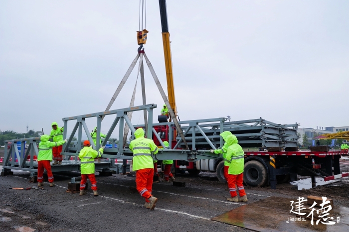本次演練以山洪爆發(fā)、泥石流、臺風(fēng)等極端氣候造成的道路內(nèi)澇深坑積水、道路大面積塌方、公路橋梁沖毀以及?;愤\輸車泄漏等特殊情況為背景,模擬公路水毀阻塞交通、橋梁垮塌中斷交通,演練隊伍嚴(yán)正執(zhí)行,在規(guī)定時限內(nèi)迅速完成桁架拼裝、橋面鋪設(shè)、橋梁落座,完成公路應(yīng)急裝備漕渡任務(wù)。