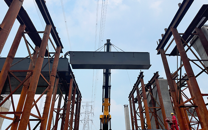 徐工SQZ8000的臂架采用五節(jié)伸縮臂,四節(jié)雙推,具有更強的起升能力及帶載伸縮能力,平均6h可完成5段結(jié)構(gòu)安裝。負載敏感比例控制系統(tǒng)提升產(chǎn)品的微動性和聯(lián)動性,方便設(shè)備的精準定位安裝,大大提升安裝施工效率,確保橋面結(jié)構(gòu)鋪設(shè)搭建任務(wù)的順暢收官。