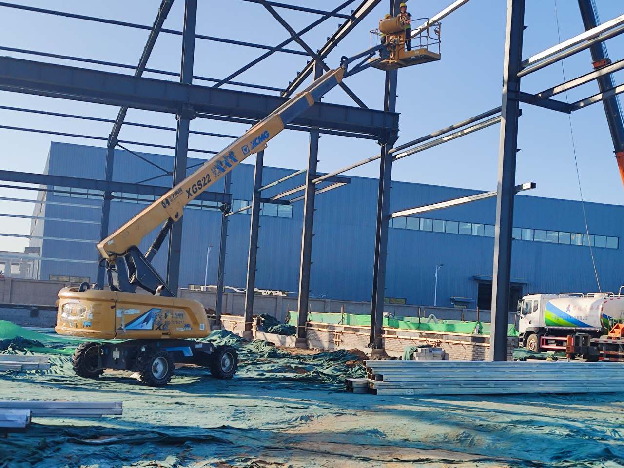 目前,徐工XGS22ACK-Li、XGS22K、XG1412HA等二十余臺(tái)設(shè)備正在此聯(lián)合作戰(zhàn),開(kāi)展外立面鋼結(jié)構(gòu)安裝、外立面玻璃安裝以及室內(nèi)管道安裝等相關(guān)工作,為這所占地31萬(wàn)平方米的綠色校園添磚加瓦。