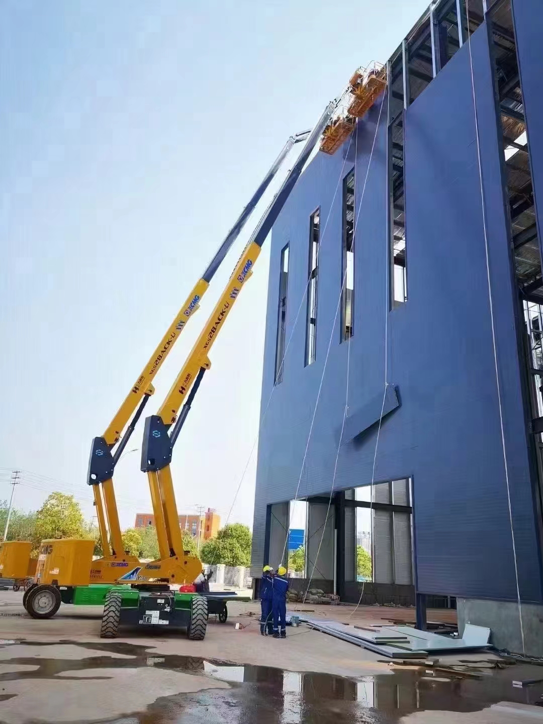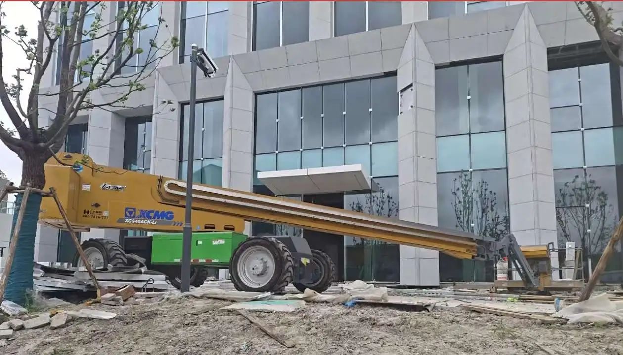 徐工兩臺(tái)XGS28ACK-Li正在緊鑼密鼓的進(jìn)行外立面的安裝工作,憑借其具有自平衡功能的伸展機(jī)構(gòu)以及大容量的鋰電池,既保證了施工的安全,又提高了工作效率,獲得了施工方的一致好評(píng)。