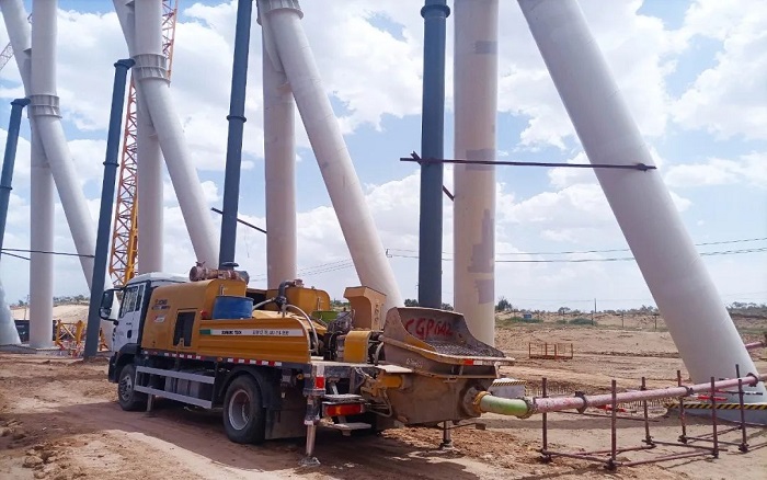 項(xiàng)目亮點(diǎn)之一的間冷塔,采用了創(chuàng)新的鋼管混凝土X柱結(jié)構(gòu),單柱高達(dá)30米,重達(dá)51.9噸。然而,隨著泵送高度的攀升,混凝土黏度急劇增加,泵送過程中極易出現(xiàn)憋壓熄火現(xiàn)象,對(duì)施工設(shè)備提出了前所未有的要求。