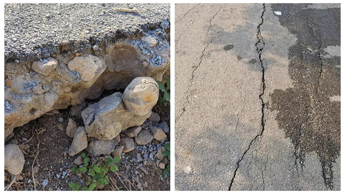 該路段由20cm水穩(wěn)砂基層+4cm瀝青混凝土面層組成,面層出現(xiàn)了大量的開(kāi)裂、車轍、沉陷等病害,損壞嚴(yán)重,前期養(yǎng)護(hù)都是對(duì)路面損壞處進(jìn)行局部處理。