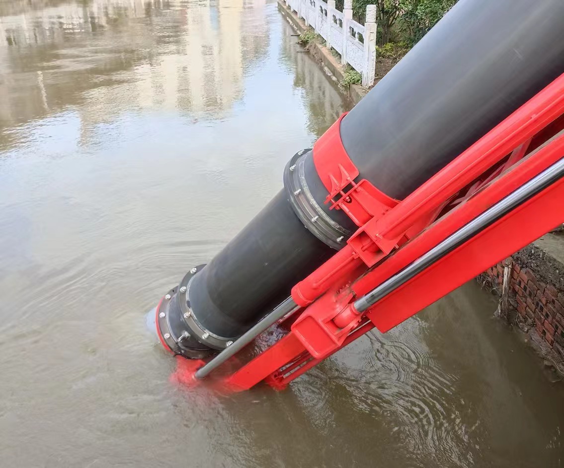 三龍支河經(jīng)縣城涵洞匯入蕭縣母親河——龍河,由于入河口的河道涵洞較小、流速較慢,難以承載過多排水量,雨停后水位仍遲遲不降,嚴重影響河道兩側(cè)居民生活。徐工救援人員聞“汛”而動,立刻趕往現(xiàn)場。
