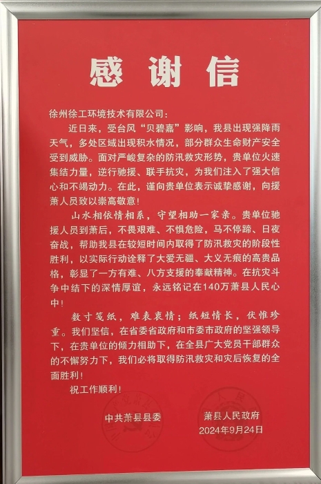 “此行是專門來感謝徐工在蕭縣防汛救災(zāi)中的無私奉獻(xiàn)。”董局長(zhǎng)表示,“你們的行動(dòng)不僅體現(xiàn)了徐工的社會(huì)責(zé)任感,更讓我們感受到了‘防汛救災(zāi)顯大愛 風(fēng)雨同舟見真情’的深刻內(nèi)涵。我們特地做了錦旗和感謝信,來表達(dá)我們的謝意?!?/span>