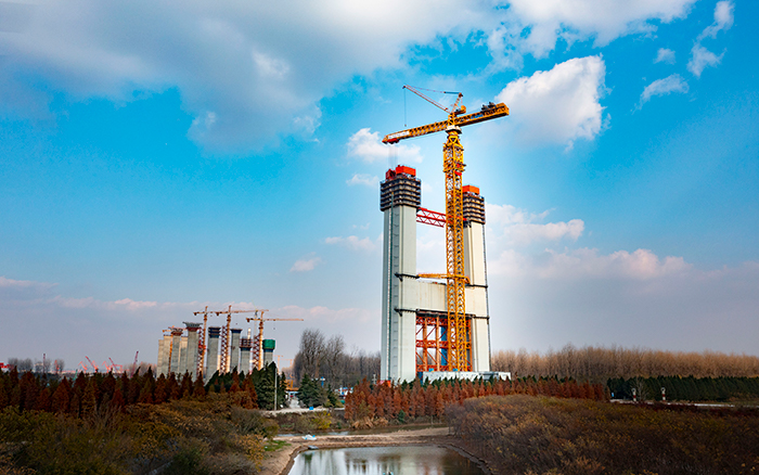 “北主塔分為三十個節(jié)段建設(shè),橋塔2至30節(jié)段中最重的一個達522噸,必須使用塔吊平穩(wěn)吊裝和拼接,確保毫米級精度?!表椖控撠?zé)人介紹。