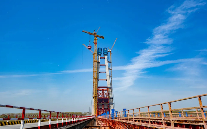 超級裝備賦能超級工程。4月10日,巢馬城際鐵路馬鞍山公鐵兩用長江大橋項目建設迎來重要節(jié)點,全球最大塔機徐工XGT15000-600S順利完成首節(jié)段鋼塔吊裝,大橋進入到上塔柱的施工階段。