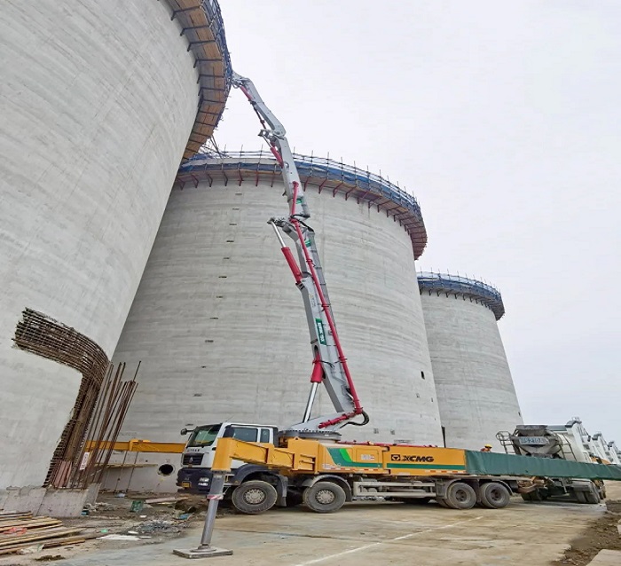 六座巨型糧倉(cāng)拔地而起,徐工HB62V泵車(chē)化身 “基建尖兵”,精準(zhǔn)擊破施工精度高、工期緊的雙重挑戰(zhàn)。