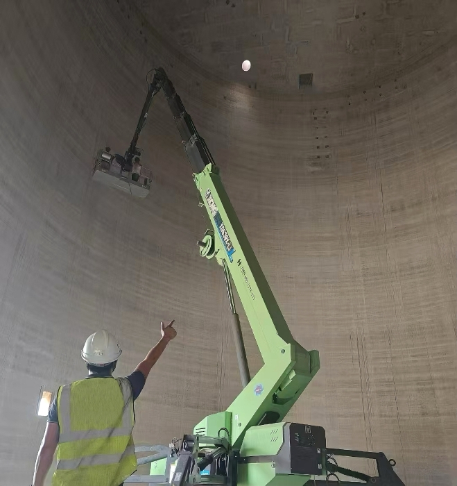 據(jù)了解,該項(xiàng)目擬新建20座淺圓倉(cāng)糧倉(cāng),需同步實(shí)施內(nèi)部維護(hù)與智能化改造,包括傳感器安裝、倉(cāng)壁修補(bǔ)等作業(yè)。糧倉(cāng)內(nèi)部空間狹窄,粉塵敏感度高,且需杜絕燃油設(shè)備可能引發(fā)的爆燃風(fēng)險(xiǎn),傳統(tǒng)腳手架或?qū)掦w設(shè)備難以滿足需求,徐工XGS39X-Li蜘蛛履帶直臂高空作業(yè)平臺(tái)成為破題關(guān)鍵。