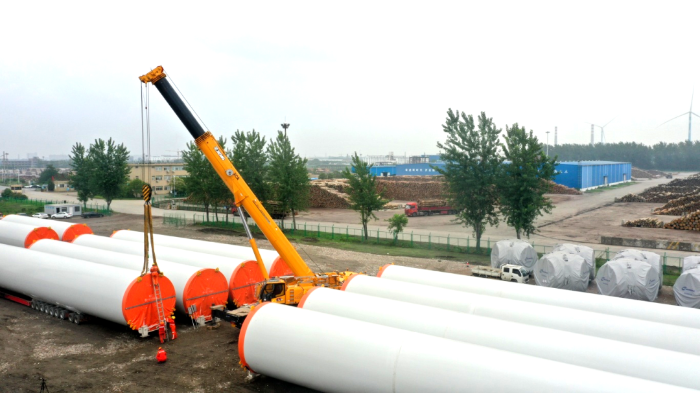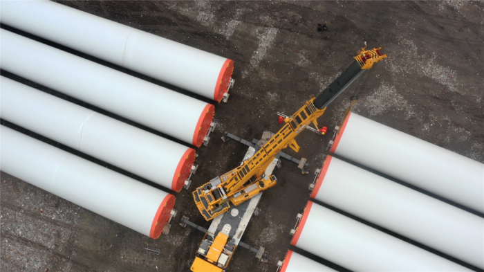 在繁忙的港口,長40米、重100噸的風(fēng)力發(fā)電塔筒擺放整齊,等待著一次關(guān)鍵的騰挪,吊裝空間局促——塔筒擺放距離較近,蕩距空間嚴(yán)重受限,這是對起重機性能與操控的極致考驗。徐工G2代起重機XCA200G8-1從容入場,以實力宣告:空間,絕非限制。