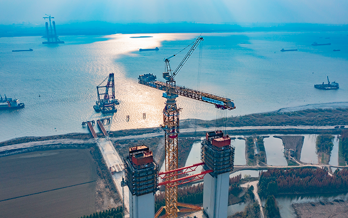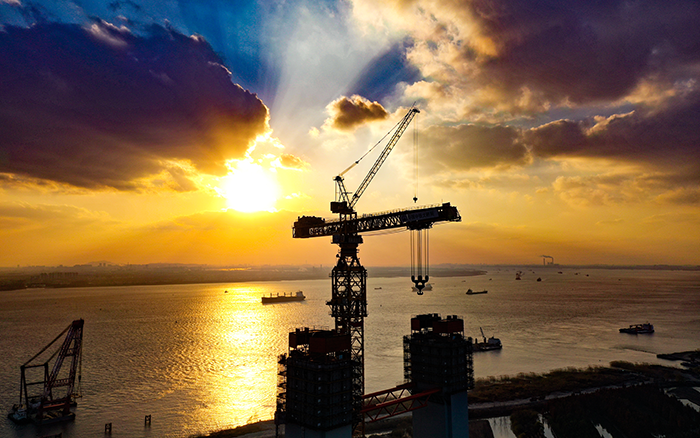近日,在世界最大跨徑懸索橋--張靖皋長江大橋南航道橋北主塔施工現(xiàn)場,徐工XGT15000-600S超大型塔機(jī)如鋼鐵巨人伸展手臂,將重達(dá)數(shù)百噸的鋼塔節(jié)段緩緩吊起,“搭積木”般穩(wěn)穩(wěn)放落在塔柱上,贏得施工方“技術(shù)先進(jìn)、安全可靠、吊裝能力強、操作平穩(wěn)、就位精準(zhǔn)、安拆效率高、智能化水平高、施工效益顯著”的高度肯定。