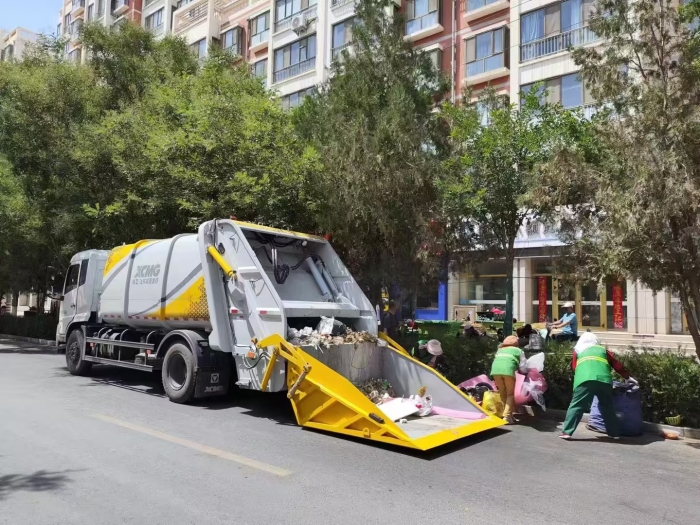 瓜州縣城區(qū)日均產(chǎn)生生活垃圾超120噸,其中60%集中于老舊小區(qū)與商業(yè)街區(qū)。徐工壓縮車采用雙向壓縮技術(shù),通過“刮板-滑板”聯(lián)動系統(tǒng)實(shí)現(xiàn)垃圾的破碎、壓縮與填裝一體化作業(yè)。在淵泉鎮(zhèn)郵電巷社區(qū),設(shè)備單次裝載僅需14秒,同等車廂容積下垃圾裝載量提升20%,輕松應(yīng)對高峰時段的桶裝、袋裝垃圾集中收運(yùn)需求。