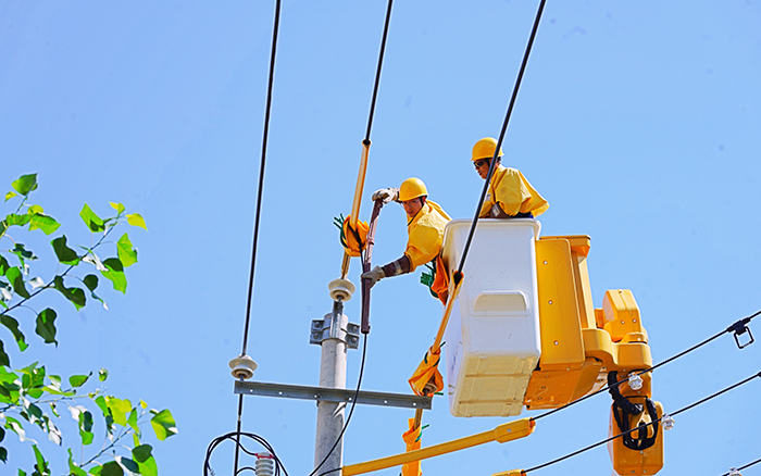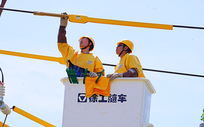 當日,驕陽似火,酷熱難耐,地面溫度高達 40℃。但供電工作人員們毫不退縮,他們爭分奪秒,絕緣手套里的手掌早已被汗水泡得發(fā)白,卻仍穩(wěn)穩(wěn)攥著工具精準操作;斗臂車內(nèi)的溫度計指針不斷攀升,他們卻顧不上擦去汗珠,全神貫注盯著線路接口。為了縮短停電風險窗口,用高效的操作與高溫賽跑,全力保障供電不中斷。徐工 GKJH22A 絕緣斗臂車穩(wěn)穩(wěn)地停靠在作業(yè)點旁,它猶如一位鋼鐵巨人,隨時準備為施工人員提供堅實的保障。