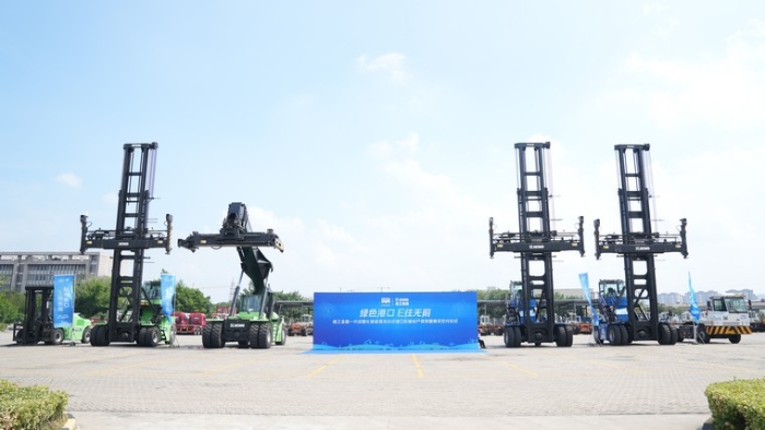 本次批量交付的正面吊、堆高機、港口牽引車、平衡重式叉車等均為純電驅(qū)動,并搭載徐工新一代E5智控節(jié)能技術平臺,為綠色港口建設注入澎湃動力。