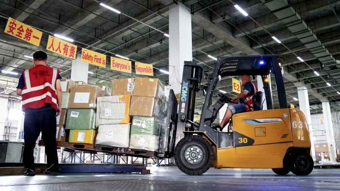 機場前置倉作為貨物進入航空運輸鏈路的首站,承擔(dān)著集中收貨、分揀、暫存等任務(wù),具有作業(yè)繁忙、吞吐量巨大、連續(xù)工作時間長的鮮明特征。面對日均數(shù)千噸的貨物周轉(zhuǎn)量,徐工定制化部署新能源叉車集群,匹配不同型號的產(chǎn)品來滿足搬運需求。