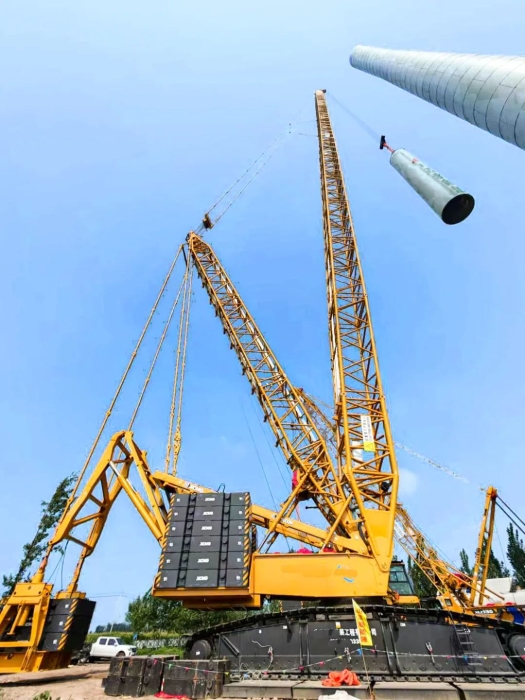 近日,山東大型風(fēng)電場(chǎng)迎來(lái)關(guān)鍵突破,徐工集團(tuán)最新研發(fā)的千噸級(jí)風(fēng)電旗艦產(chǎn)品——首臺(tái)XLC15000M(1100噸級(jí))履帶起重機(jī)正式投入實(shí)戰(zhàn),在華東新能源建設(shè)一線完成首次吊裝任務(wù)。
