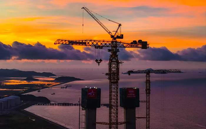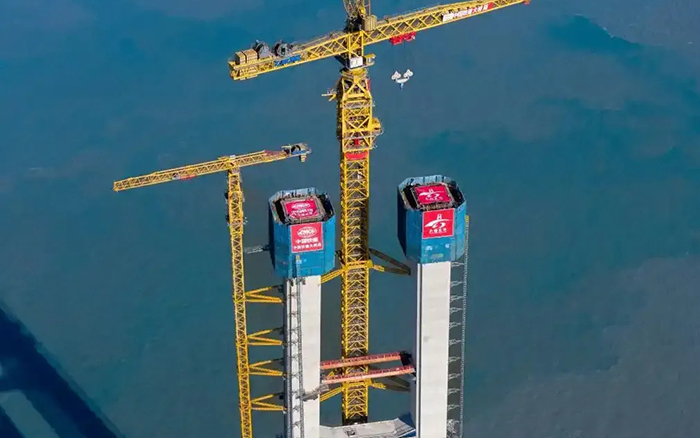在封頂作業(yè)中,徐工塔機將百噸構件以毫米級精度吊裝至200余米高空,硬剛10級海風,創(chuàng)造了海上橋梁建設新紀錄。多臺群塔協(xié)同作業(yè),創(chuàng)造性攻克"高空精度、抗風穩(wěn)性、吊裝效率"三大世界級施工難題,展現(xiàn)了中國裝備的卓越性能。