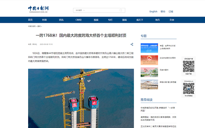 寧波舟山港六橫公路大橋二期關鍵控制性工程