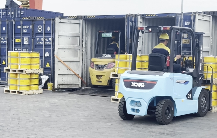車與孔雀系列高壓鋰電重載叉車穿梭其間,以強勁性能與默契配合,為鐵路運輸高效穩(wěn)定運轉(zhuǎn)筑起堅實保障,盡顯徐工裝備的硬核實力。