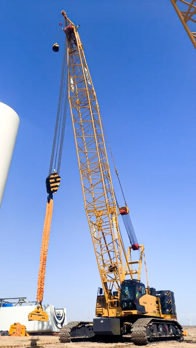 近日,在我國(guó)西北某風(fēng)電場(chǎng),徐工XLC15000(1000噸級(jí))履帶起重機(jī),以132+12米標(biāo)準(zhǔn)風(fēng)電工況,精準(zhǔn)將重達(dá)34噸的風(fēng)機(jī)葉片平穩(wěn)吊裝至百米高空,圓滿(mǎn)完成10兆瓦風(fēng)機(jī)吊裝任務(wù)。