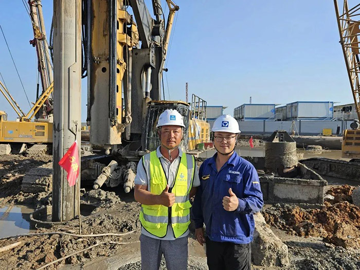 旋挖鉆機群不間斷施工的同時,徐工技術人員與服務團隊全天候走訪巡檢,有力保障項目工期節(jié)點。