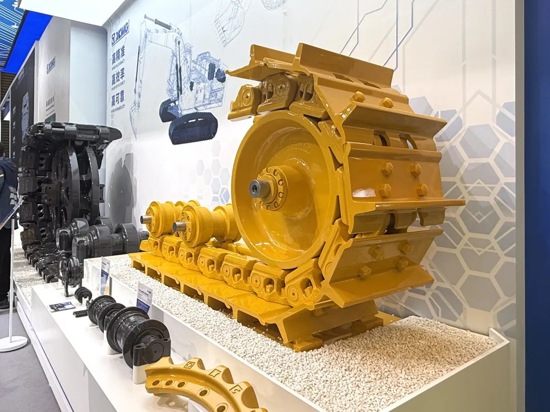 上海寶馬展現(xiàn)場,徐工4套成套化履帶底盤產(chǎn)品——400噸挖掘機履帶底盤、900馬力推土機履帶底盤、微型挖掘機履帶底盤、耐高溫、耐極寒工況履帶底盤大放異彩。