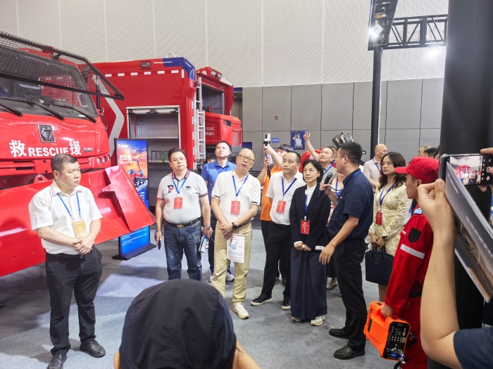 展會(huì)現(xiàn)場(chǎng),系列排水搶險(xiǎn)車、應(yīng)急救援消防車、“鋼鐵螳螂”步履式挖掘機(jī),吸引眾多行業(yè)專家、應(yīng)急部門代表駐足交流。