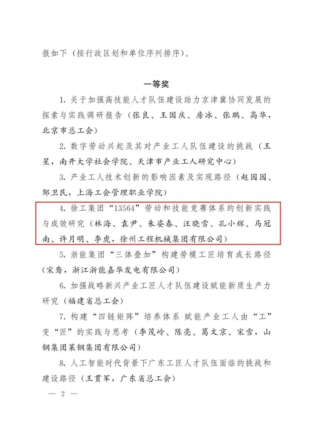 在本次大會(huì)主題征文活動(dòng)中,徐工集團(tuán)提報(bào)的《打造徐工“13564”勞動(dòng)和技能競(jìng)賽模型,拓展產(chǎn)業(yè)工人成長(zhǎng)新賽道,跑出企業(yè)高質(zhì)量發(fā)展加速度》在全國(guó)2463篇征文中脫穎而出,成功斬獲一等獎(jiǎng)。