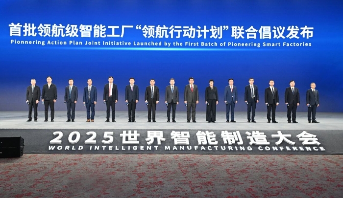 楊東升與首批15家領(lǐng)航級智能工廠主要負(fù)責(zé)人共同發(fā)布“領(lǐng)航行動計劃”聯(lián)合倡議。