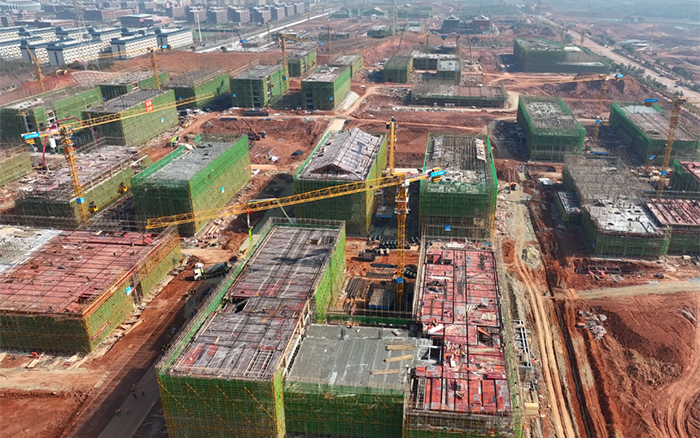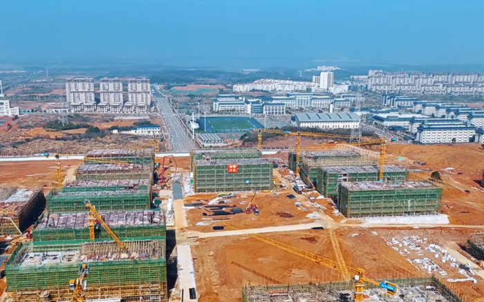 三江之口,七省通衢。在江西省九江市,37臺徐工XGT6013-6S1塔機(jī)批量參建南昌工學(xué)院共青校區(qū)項目,施工現(xiàn)場一片火熱,群塔施工緊張有序,“徐工金”成為現(xiàn)場最亮眼的一道景色。