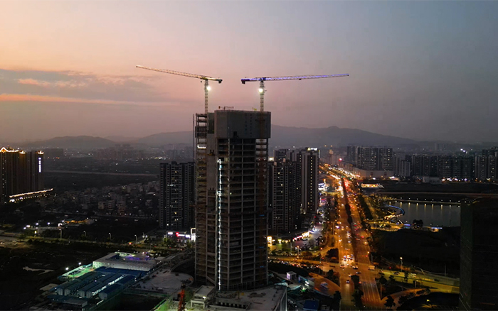 與高樓肩并肩,讓夢想都實(shí)現(xiàn)。3臺XGT6515E-10S塔機(jī)在施工現(xiàn)場運(yùn)轉(zhuǎn)自如,相互配合,合力保障項(xiàng)目施工建設(shè)。