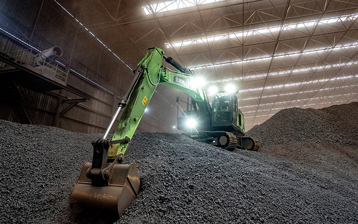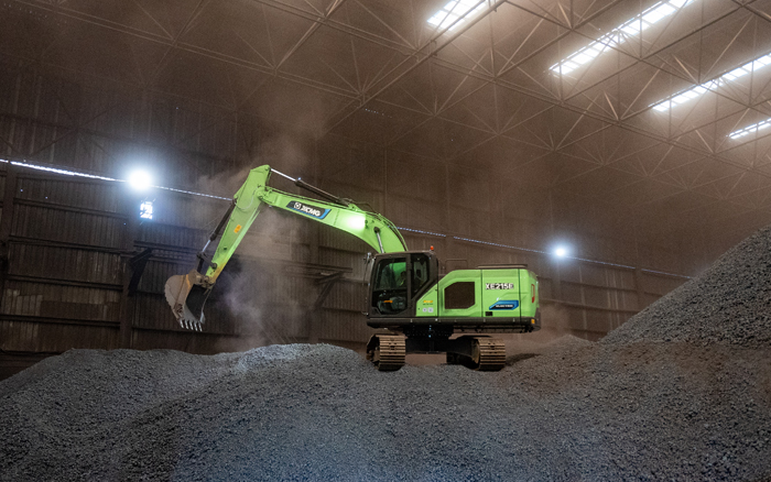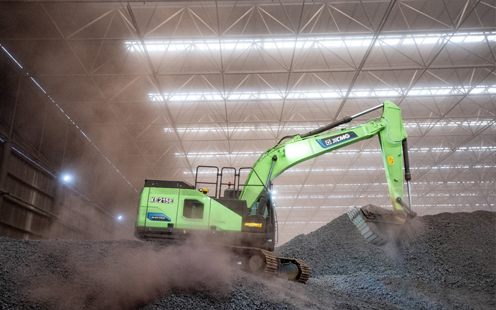 在封閉的廠房中,XE215EV純電動挖掘機正對鋼鐵原料礦石進行挖掘、搬運作業(yè),鋼鐵冶煉廠屬于重灰塵環(huán)境,而XE215EV卻練就了一身“超級本領”。