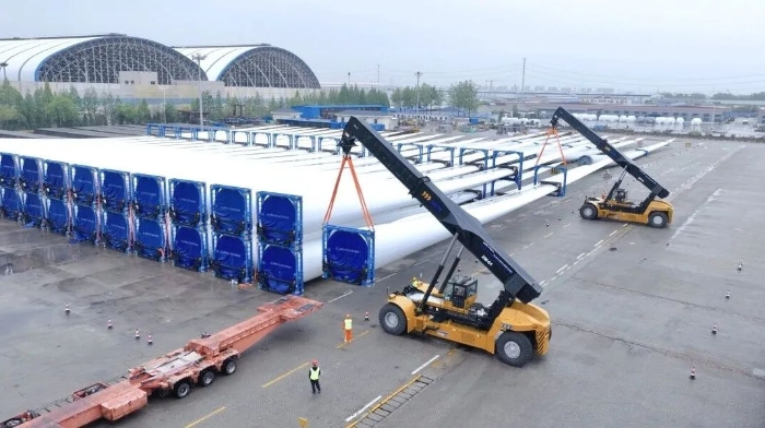 目前,XCS70KS風(fēng)電正面吊已在揚(yáng)州港順利完成多次大型風(fēng)電部件裝卸任務(wù),其穩(wěn)定高效的性能成為長(zhǎng)三角地區(qū)智慧口岸建設(shè)的標(biāo)桿力作。該裝備的成功應(yīng)用,不僅全面提升了港口運(yùn)營(yíng)質(zhì)效,也為全國(guó)港口的智能化升級(jí)提供了可復(fù)制、可推廣的徐工-揚(yáng)州港樣板。