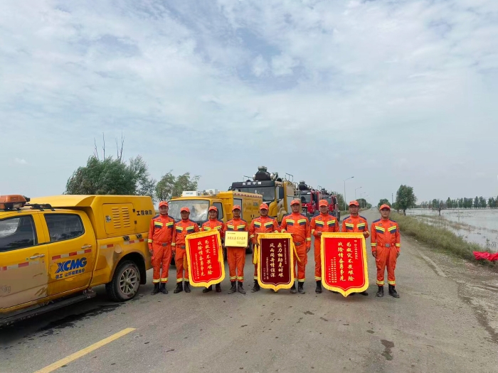 9月5日,內(nèi)蒙古自治區(qū)防汛抗旱指揮部于呼和浩特市托克托縣人民政府舉行防汛搶險(xiǎn)隊(duì)伍歡送儀式,徐工應(yīng)急救援隊(duì)等馳援內(nèi)蒙古的隊(duì)伍榮獲錦旗與證書(shū)。