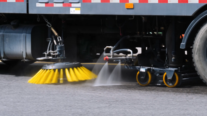 高壓祛污,還原路面本色”:高壓手持噴槍,輕松瓦解地面頑固污漬,顯著提升道路潔凈度,助力城市考評(píng)爭(zhēng)優(yōu)。