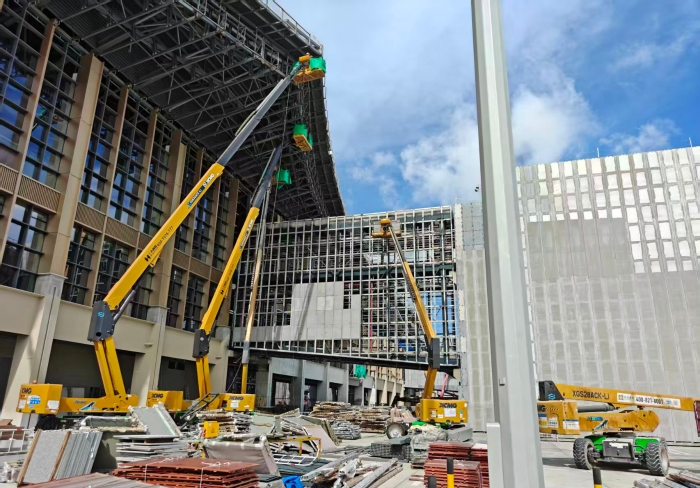 在三亞鳳凰機場T3航站樓這一重大基礎(chǔ)設(shè)施建設(shè)現(xiàn)場,由三臺XGS34ACK-Li與兩臺XGS28ACK-Li組成的鋰電高空作業(yè)編隊創(chuàng)造了令人矚目的施工效率。面對航站樓內(nèi)部復雜的施工環(huán)境,展現(xiàn)出了卓越的協(xié)同作戰(zhàn)能力。