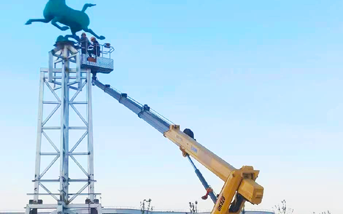 施工期間,設(shè)備的多重安全配置派上用場:軟腿保護(hù)、上下車互鎖系統(tǒng)全程護(hù)航,防滑作業(yè)平臺保障人員安全,遙控器遠(yuǎn)程操作讓精細(xì)雕刻更便捷。“臂體穩(wěn)、操作靈,雕塑曲面施工沒出一點(diǎn)誤差。” 現(xiàn)場施工人員評價道。